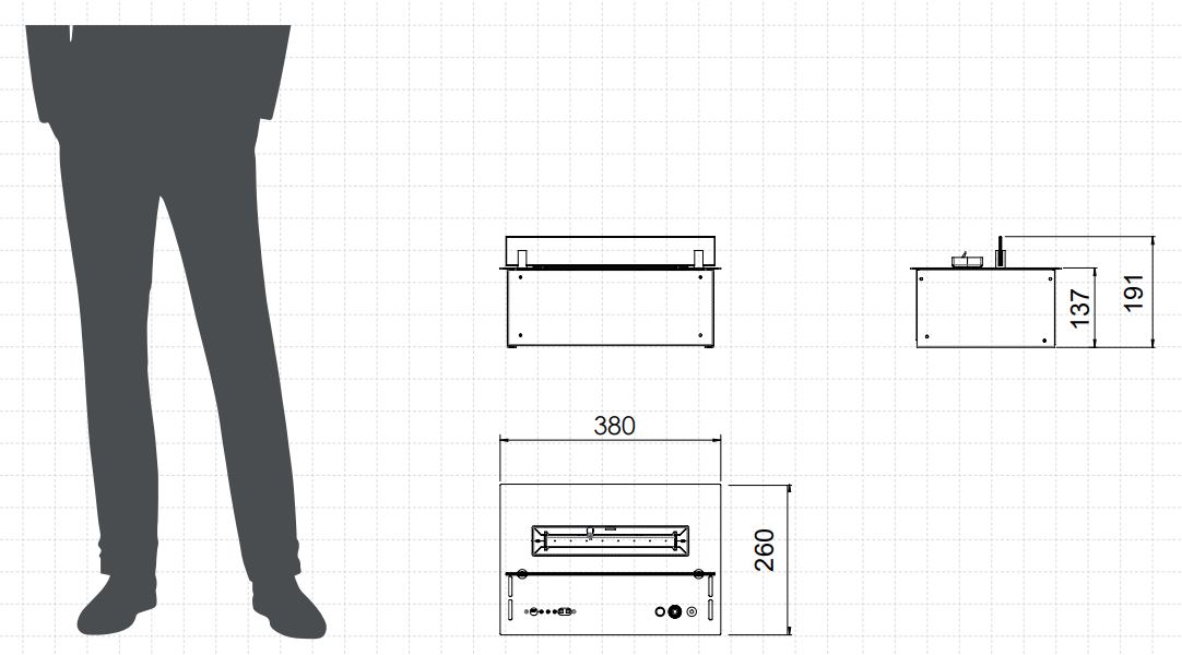 Dodatni dekorativni elementi poput rešetke i drvenih polena mogu se opcionalno dodati za klasičan vizualni efekt. Senso Burner je idealan za sve koji žele sofisticirani i siguran kamin na bioetanol s minimalnim održavanjem, pogodan za unutarnju upotrebu.